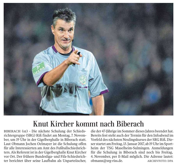 Am morgigen Freitag (13.01.2017) startet der Neulingskurs der Schiri-Gruppe Riss mit dem Info-Abend.