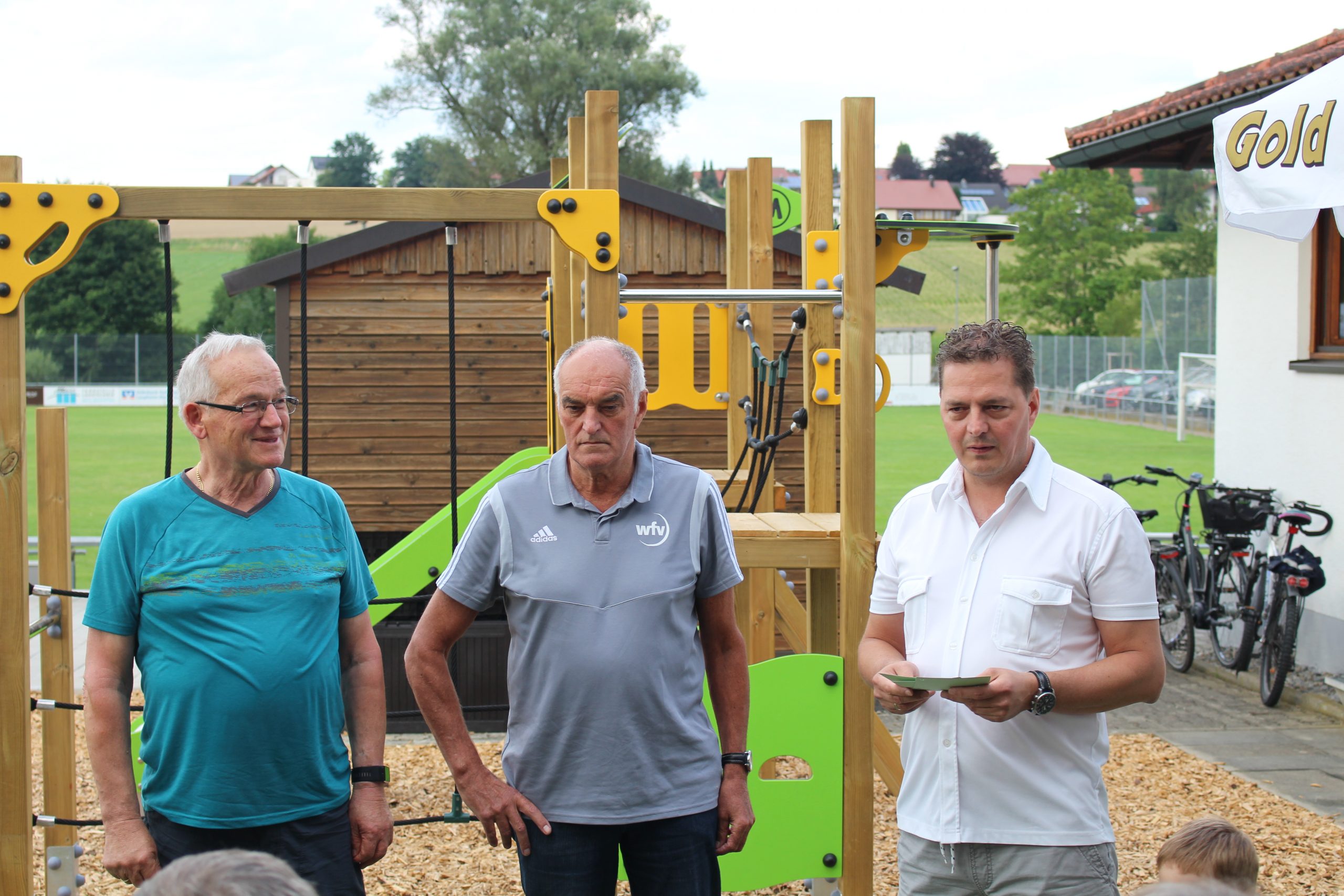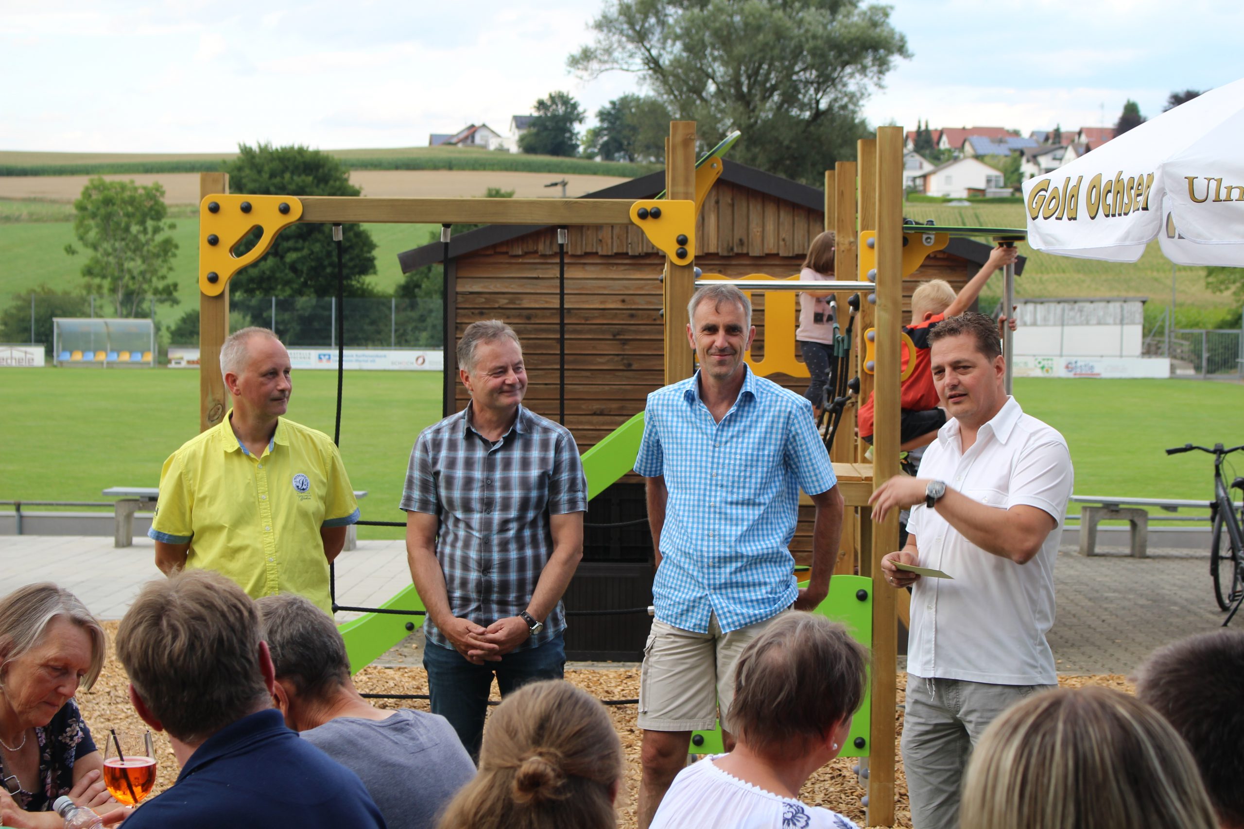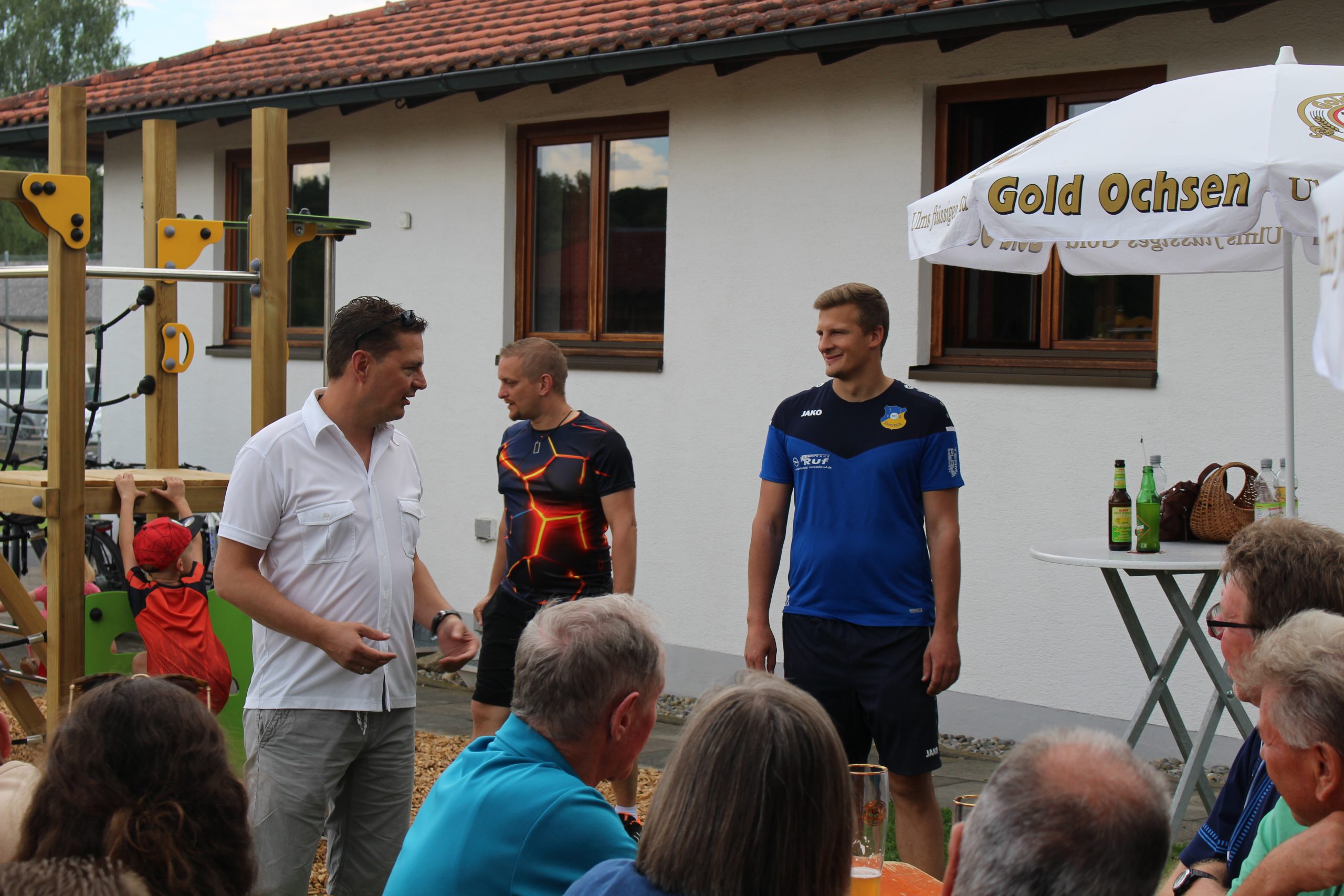 Auf dem Sportgelände des SC Schönebürg, mit nagelneuem Kinderspielplatz, empfing Obmann Jochen neben ca. 70 Schiris samt Kind und Kegel auch den Bezirksvorsitzenden Sigge Kühner sowie dessen Vorgänger Alois Hummler. In seiner Ansprache sprach Jochen über die fordernden Corona-Jahre aus Sicht der Schirigruppe sowie die umso wichtigere Gemeinschaft und der Zusammenhalt aller Schiris. Es sei extrem schade, dass die nun Geehrten so lange, teilweise seit 2020 auf Ihre Ehrungen hätten warten müssen, wenngleich die Pandemie eine Ehrungsveranstaltung natürlich nicht möglich gemacht hätte.
