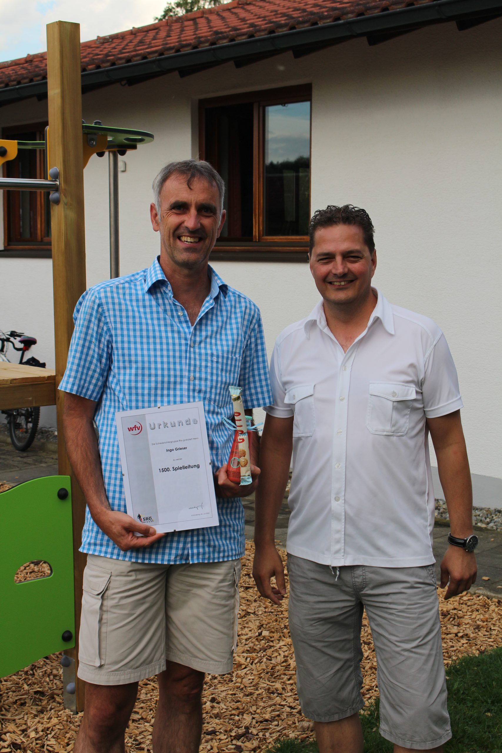 Ingo Grieser (SV Altheim) und Hubert Moll (FV Biberach; in Abwesenheit) für 1500 Spiele