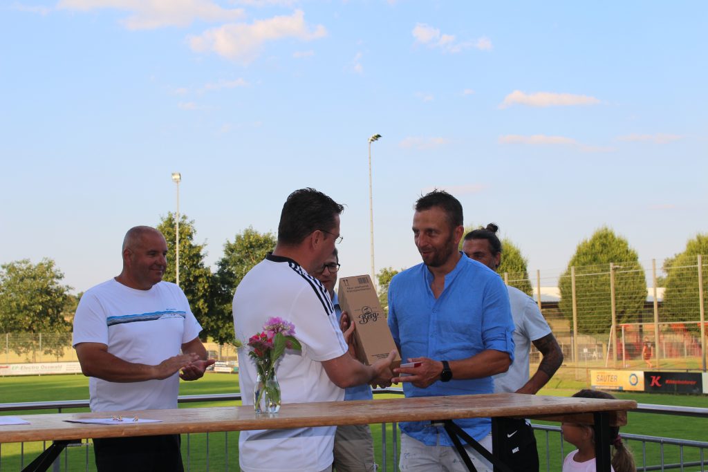 Da ein solcher Abend nur so gut und schön sein kann durch den Einsatz vieler helfender Hände, war es Jochen ein Anliegen sich bei allen, die zum Gelingen beigetragen haben zu bedanken. Tobias Schwer als Organisator zusammen mit seinem Team der TSG Achstetten kümmerte sich um Auf-, Abbau, Getränke und das Essen. Benjamin Felka von der Berg Brauerei stiftete darüber hinaus Preise für die Geehrten.